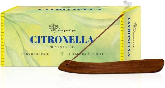 Seasons 50 Citronella Incense Sticks for Home, Kitchen, Outdoors, Bars, Office, Gift and more; keep Bugs and Insects away, comes with Wooden Incense Stick Kit Holder